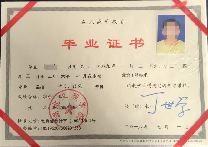 正式录取的学员完成规定的全部课程,学习期满,考试各科成绩合格,由湖北文理学院颁发专科或本科毕业证书,国家承认学历;电子注册,网上查询;本科毕业生符合授予学士学位条件者,可授予学士学位。