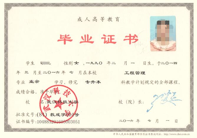 正式录取的学员完成规定的全部课程,学习期满,考试各科成绩合格,由武汉科技大学颁发专科或本科毕业证书,国家承认学历;电子注册,网上查询;本科毕业生符合授予学士学位条件者,可授予学士学位。